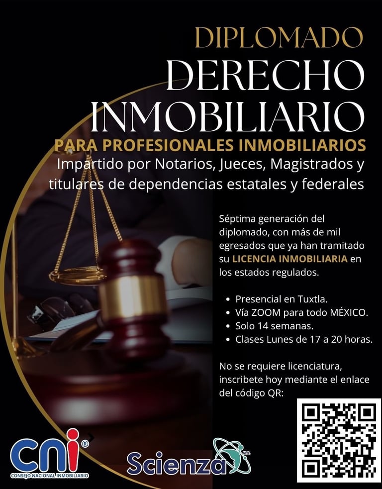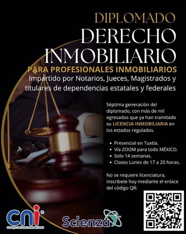 Para esta séptima generación del diplomado que se imparte desde hace cinco años, con más de mil egresados que obtienen o renuevan su LICENCIA INMOBILIARIA en los estados que la regulan, Scienza celebra convenio con el Consejo Nacional Inmobiliario (CNI) para impulsar la profesionalización nacional del sector inmobiliario.